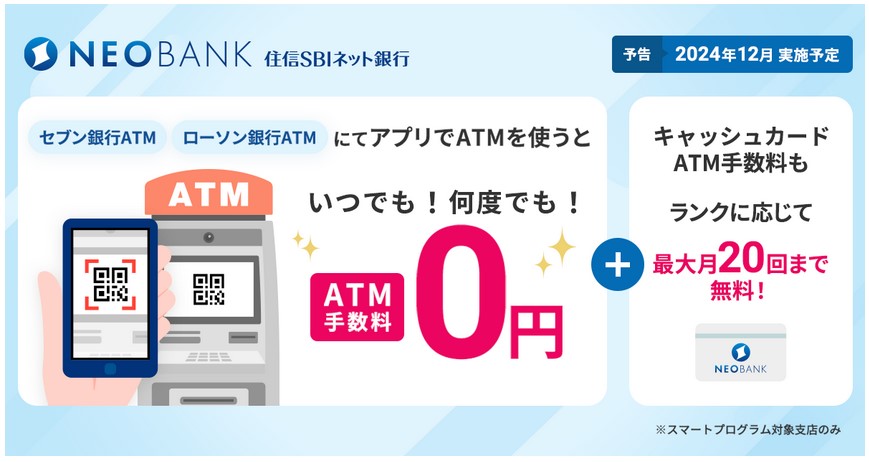 2024年12月から、スマホアプリを使ったセブン銀行・ローソン銀行ATMの取引が回数無制限になるといった使い勝手が上がる発表がありました。